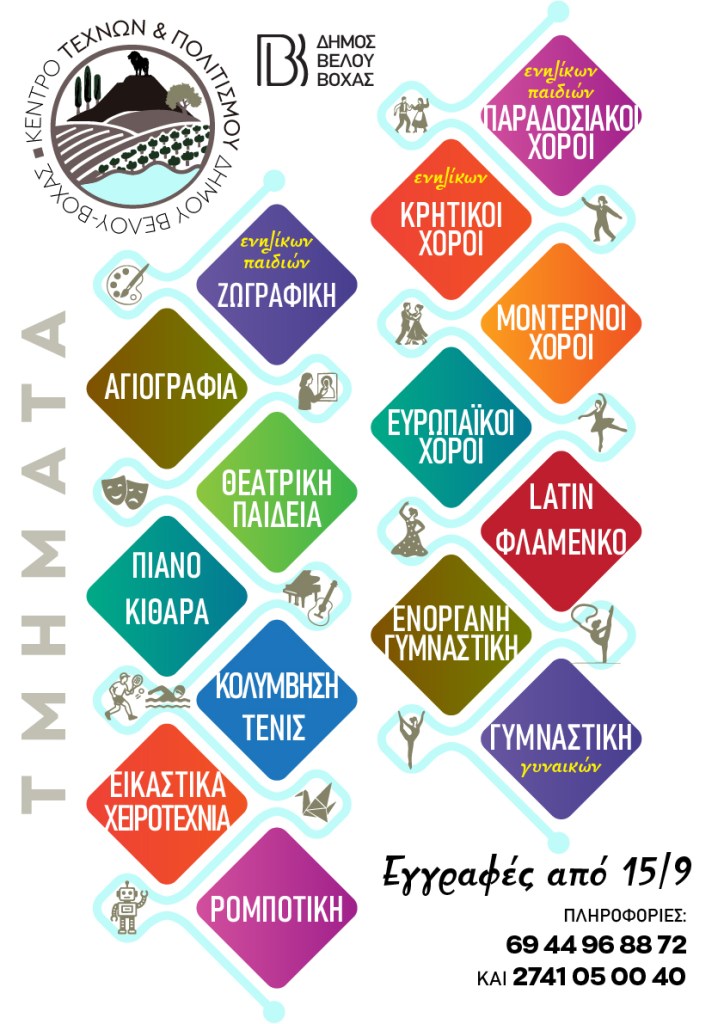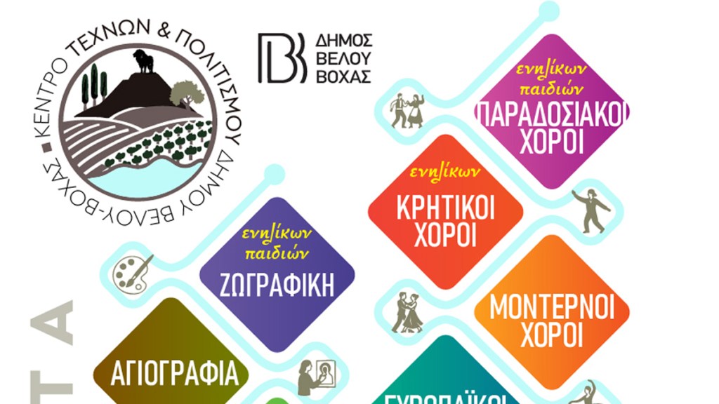 Το Κέντρο Τεχνών και Πολιτισμού του Δήμου Βέλου – Βόχας ανοίγει τις πόρτες του για τη νέα περίοδο και προσκαλεί παιδιά και ενήλικες να συμμετάσχουν σε ένα πλούσιο πρόγραμμα δημιουργικών και αθλητικών δραστηριοτήτων.
