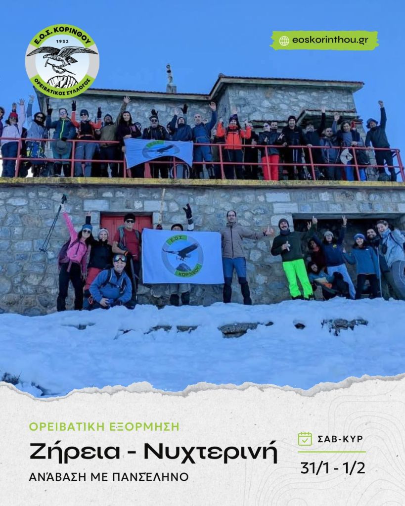 Ο ΕΟΣ Κορίνθου σας προσκαλεί σε μια μοναδική χειμερινή εμπειρία: νυχτερινή ανάβαση στη Μεγάλη Ζήρεια, προς την κορυφή Σημείο (2.374 μ.), κάτω από το μαγευτικό φως της Πανσελήνου του Χιονιού.