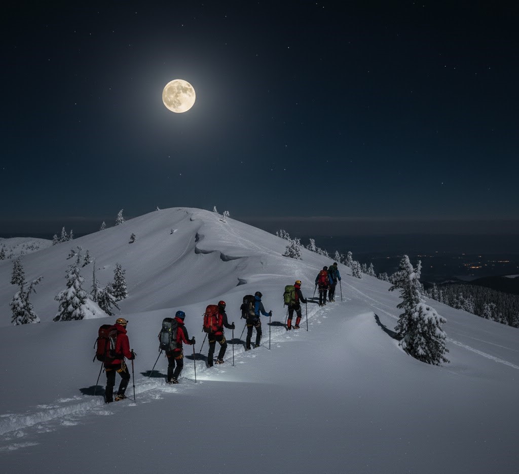 Η Πανσέληνος του Φεβρουαρίου, γνωστή και ως Σελήνη του Χιονιού ή Σελήνη της Πείνας, συμβολίζει την καρδιά του χειμώνα — όταν το βουνό ντύνεται στα λευκά και η φύση αποκαλύπτει την πιο αγνή, άγρια και εντυπωσιακή της όψη. Θα κινηθούμε μέσα σε χιονισμένα τοπία, με μοναδικό φωτισμό το φεγγάρι και τα αστέρια, ζώντας μια εμπειρία που δύσκολα περιγράφεται με λόγια.