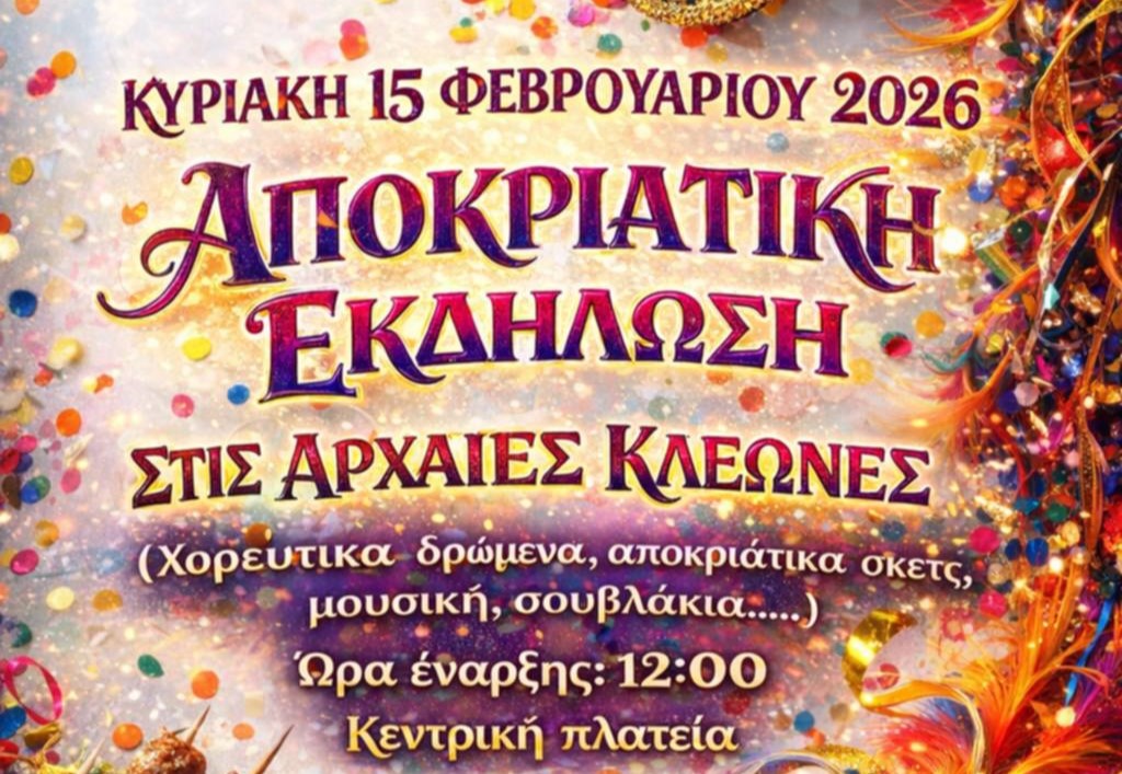 Σε ρυθμούς Καρναβαλιού εισέρχονται οι Αρχαίες Κλεωνές, καθώς ο τοπικός Πολιτιστικός Σύλλογος προετοιμάζει μια μεγάλη γιορτή για την Κυριακή 15 Φεβρουαρίου. Η εκδήλωση αναμένεται να συγκεντρώσει κατοίκους και επισκέπτες στην κεντρική πλατεία του χωριού, σε μια προσπάθεια αναβίωσης των εθίμων και ενίσχυσης της τοπικής κοινωνικής συνοχής μέσα από τη διασκέδαση.